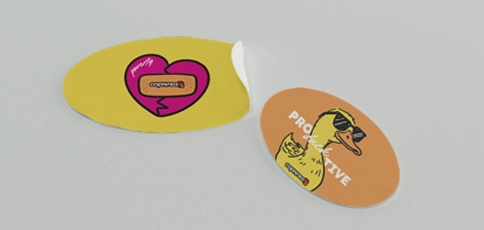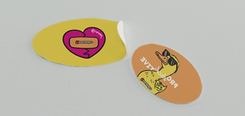 Šie lipdukai spaudžiami ant labai atsparaus skaidraus vinilo, naudojant aukštos raiškos rašalus, kurie užtikrina intensyvias spalvas net ant šviesių fonų. Klijų plėvelė yra lanksti, ilgaamžė ir lengvai prilimpa prie lygių paviršių: stiklo, plastiko, metalo ar satininės popieriaus tekstūros.